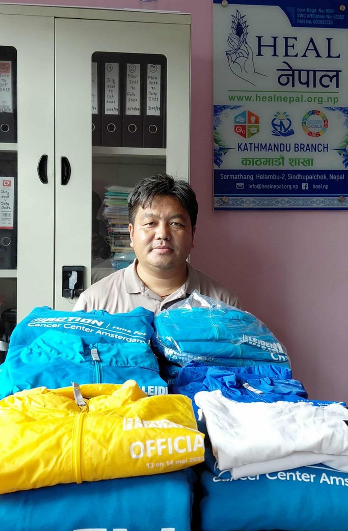 Ook Tashi Lama, van ngo HEAL, ging spullen kopen en bracht voedsel naar de families in de ziekenhuizen van de gewonden, maar ook kleding naar mensen die alles kwijt waren. Wij hebben hem kunnen steunen met een bijdrage.