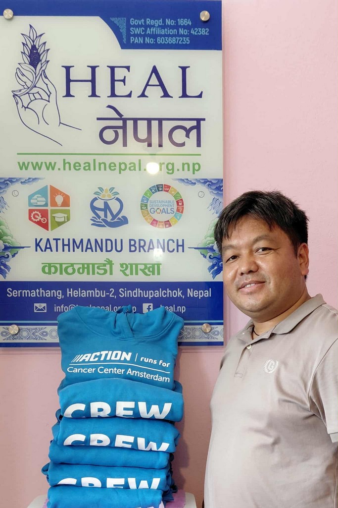 Ook Tashi Lama, van ngo HEAL, ging spullen kopen en bracht voedsel naar de families in de ziekenhuizen van de gewonden, maar ook kleding naar mensen die alles kwijt waren. Wij hebben hem kunnen steunen met een bijdrage.