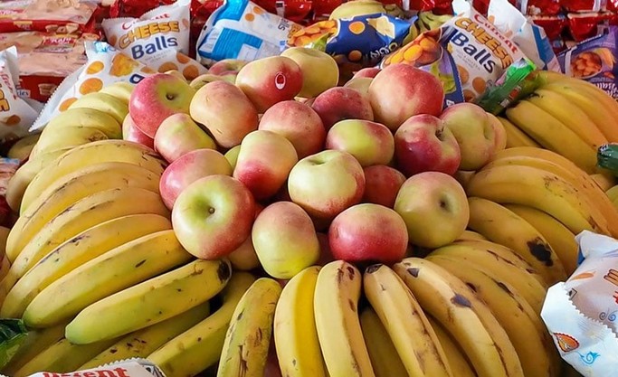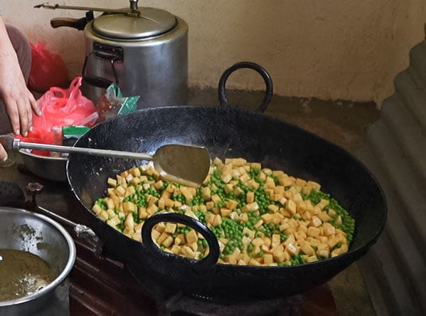 Tashi van HEAL op weg met kleding en voedsel.